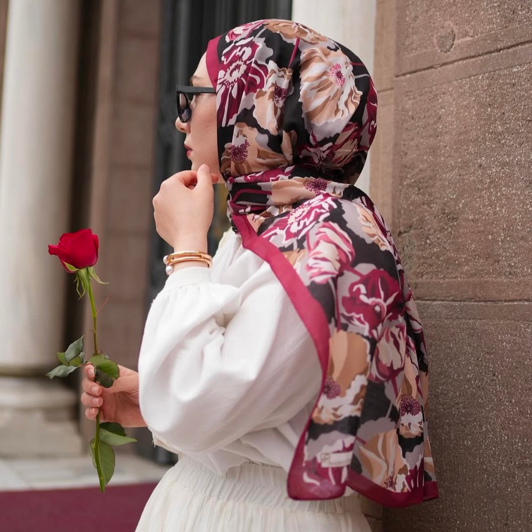 Crafted from a silky-soft, easy-to-shape fabric, the hijab drapes beautifully and stays in place all day. Whether styled for a casual day out or a polished, elevated look, the subtle floral motifs add a refined charm that complements any outfit.