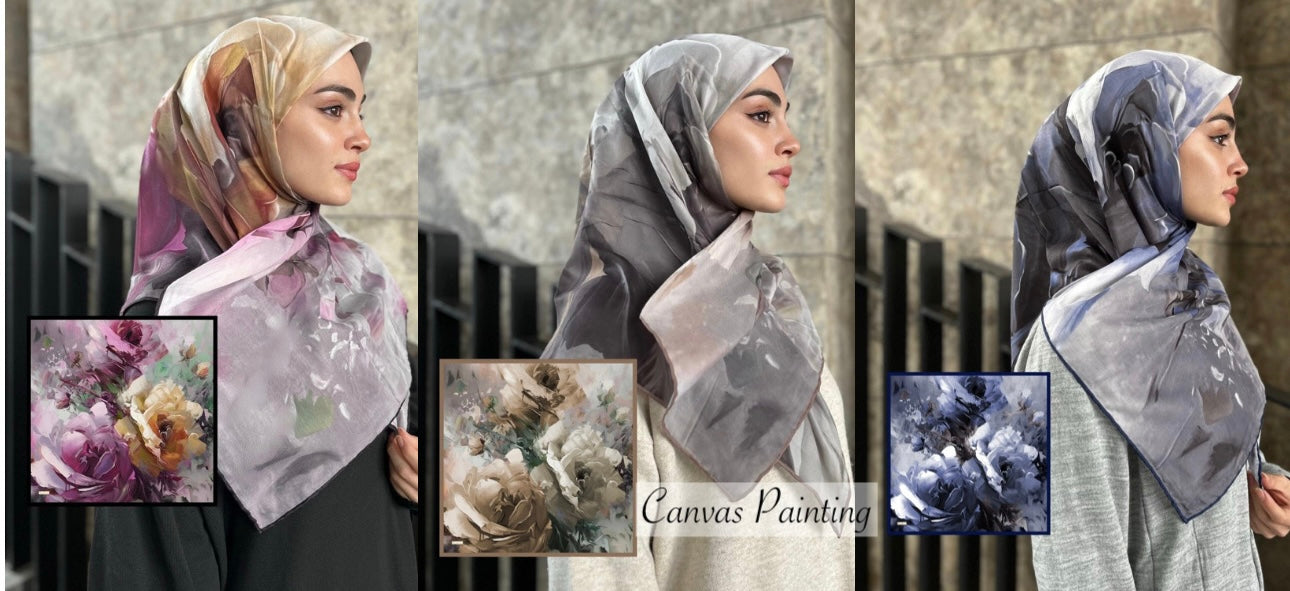 Bringing the elegance of art into your everyday style, the Canvas Painting Pattern Square Scarf dazzles with its flower motifs reminiscent of a true artwork. With rich color transitions, a soft texture, and a graceful drape, it highlights elegance in every outfit.